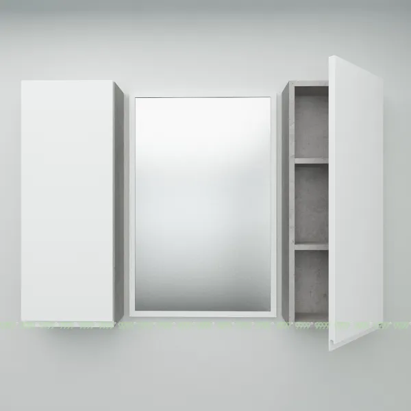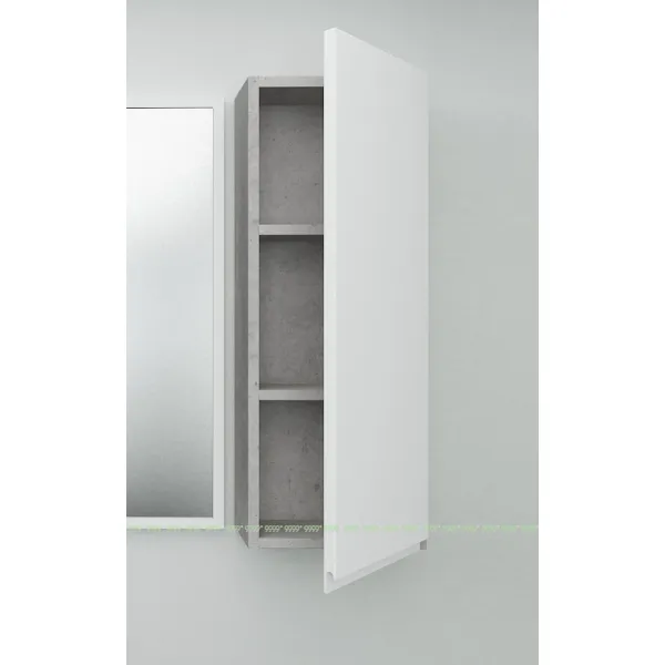 Корпус и фасад - Фасады выполнены из высококачественного крашеного МДФ Egger (Австрия), толщина-19 мм, цвет белый, глянец, интегрированная ручка. Боковиные стенки, корпус , полки шкафчика выполняются из высококачественного ЛДСП Egger (Австрия), цвет бетон чикаго светло-серый.