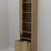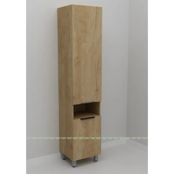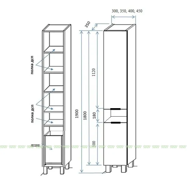 функционал: напольный пенал на 4 ножках , 1 высокий выдвижной ящик (можно использовать как корзина для белья) с плавным ходом и закрыванием (доводчики нижнего монтажа - Boyard), 5 полок (одна открытая), накладные ручки-профиль черного цвета (по желанию можно заменить на хром).