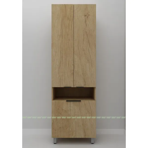 функционал: напольный пенал на 4 ножках , 1 высокий выдвижной ящик (можно использовать как корзина для белья) с плавным ходом и закрыванием (доводчики нижнего монтажа - Boyard), 5 полок (одна открытая), накладные ручки-профиль черного цвета (по желанию можно заменить на хром).