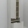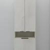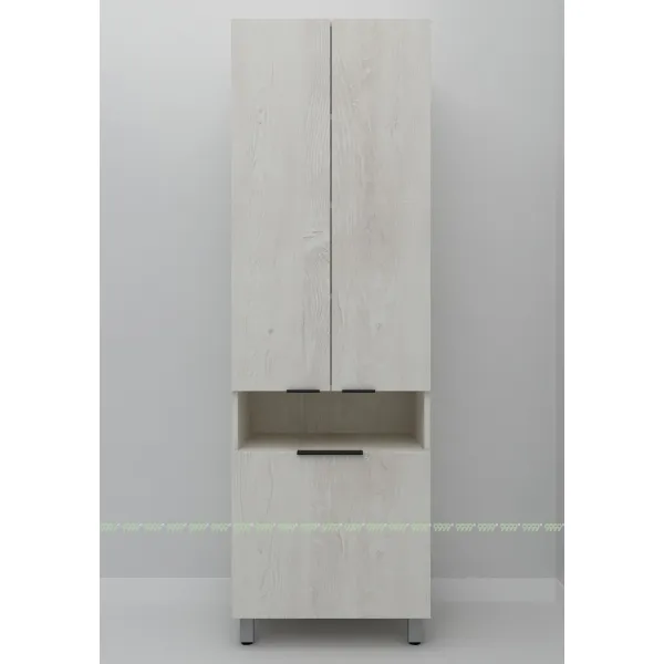 функционал: напольный пенал на 4 ножках , 1 высокий выдвижной ящик (можно использовать как корзина для белья) с плавным ходом и закрыванием (доводчики нижнего монтажа - Boyard), 5 полок (одна открытая), накладные ручки-профиль черного цвета (по желанию можно заменить на хром).