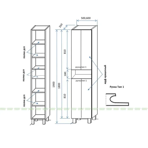 корпус и фасад - Фасады выполнены из высококачественного крашеного МДФ Egger (Австрия), толщина-19 мм, матовый. Корпус, полки и внутренние детали из ламинированной ДСП Egger (Австрия), толщина-18 мм.