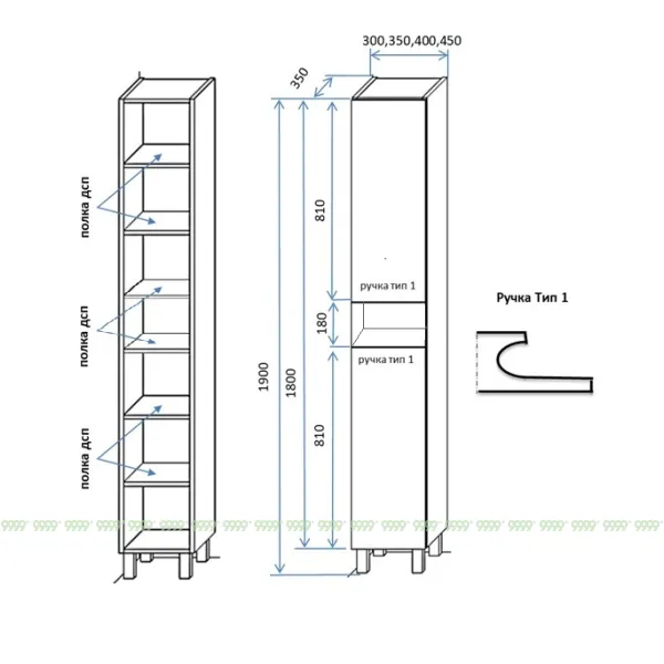 функционал: напольный пенал на 4 ножках , 6 полок (одна по середине открытая)