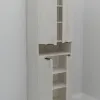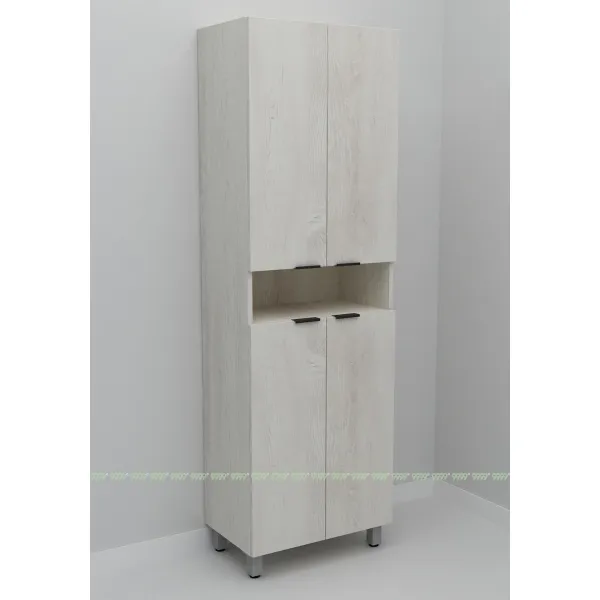 функционал: напольный пенал на 4 ножках , 6 полок (одна по середине открытая), накладные ручки-профиль черного цвета (по желанию можно заменить на хром).