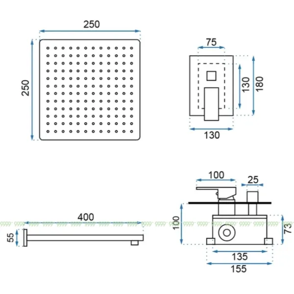 | Размер верхнего душа | 25 x 25 см |