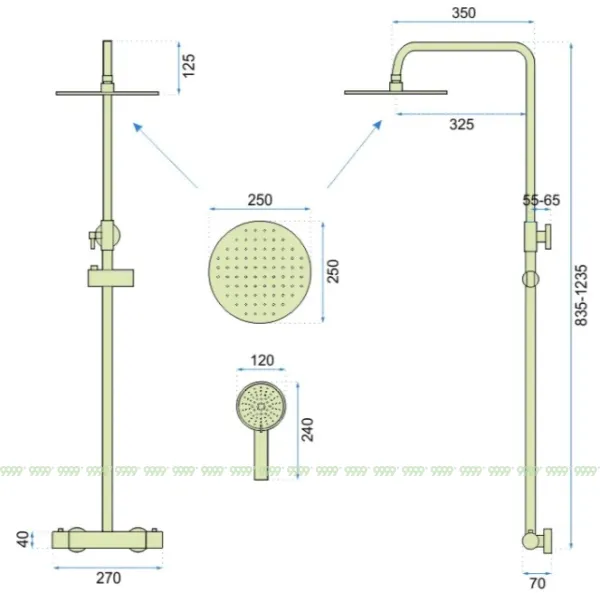 | Размер верхнего душа | 25 x 25 см |