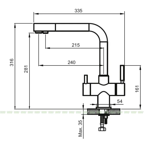 Кухонный смеситель с независимым каналом для чистой питьевой воды.