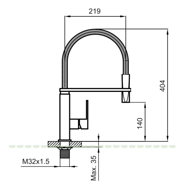 Смеситель для кухонной мойки с гибким пружинным изливом