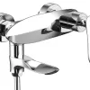 Смеситель для ванны выполнен из первоклассной латуни, устойчивой к коррозии, что является гарантией высокого качества и долговечности изделия. В комплект входят: крепления, эксцентрики, настенный держатель, душевой шланг, душевая лейка, аэратор, дивертор.