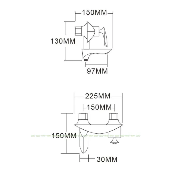Смеситель для ванны выполнен из первоклассной латуни, устойчивой к коррозии, что является гарантией высокого качества и долговечности изделия. В комплект входят: крепления, эксцентрики, настенный держатель, душевой шланг, душевая лейка, аэратор, дивертор.