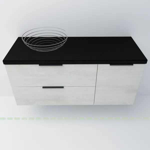 Столешница с прямой кромкой, что соответствует современной тенденции к строгим прямым линиям. Цвет- черный. Структура Сильвретта напоминает гранит со всеми присущими ему деталями, такими как шероховатость, эффект глубины и чередование матовых и глянцевых участков