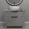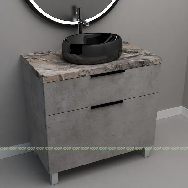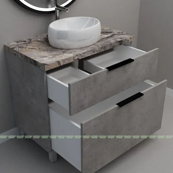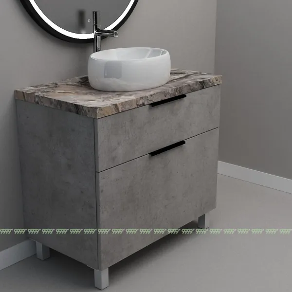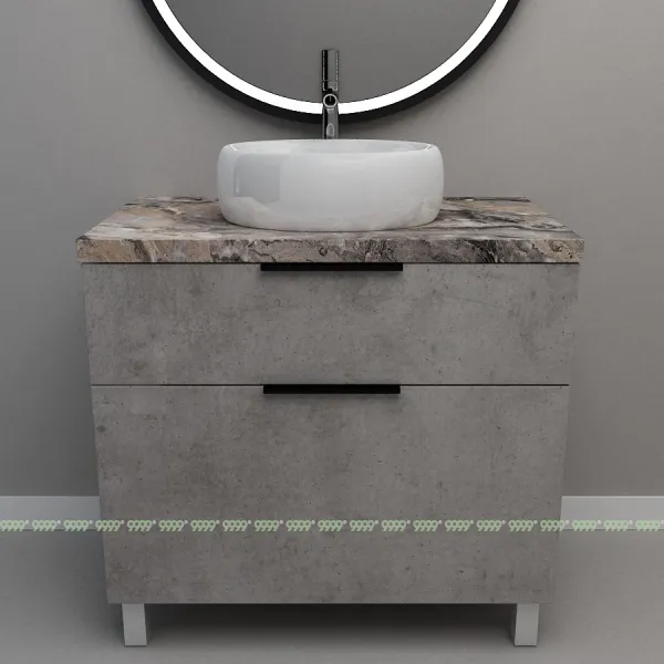 Мебель для ванной: тумбы, пеналы, шкафчики и т.д поставляются в СОБРАННОМ ВИДЕ (кроме накладных ручек и ножек, если таковые есть в модели, они прикручиваются самостоятельно), столешницы под врезной или накладной умывальник изготавливаются БЕЗ ВЫРЕЗОВ под умывальник и смеситель (все вырезы производятся самостоятельно после монтажа столешницы на опоры (тумбу, кронштейны, уголки и т.д.) или оплачиваются дополнительно, но только после согласования)