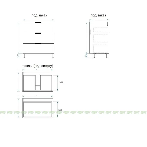 функционал: напольная тумба, 3 выдвижных ящика с плавным ходом и закрыванием (доводчики нижнего монтажа - Boyard).