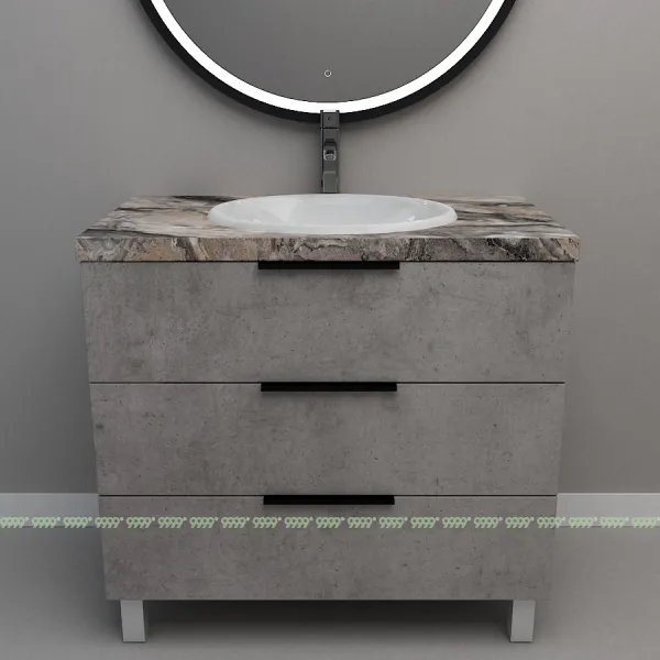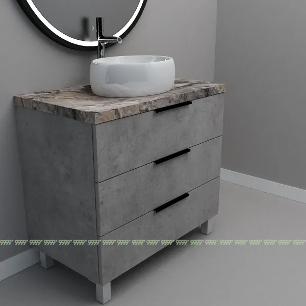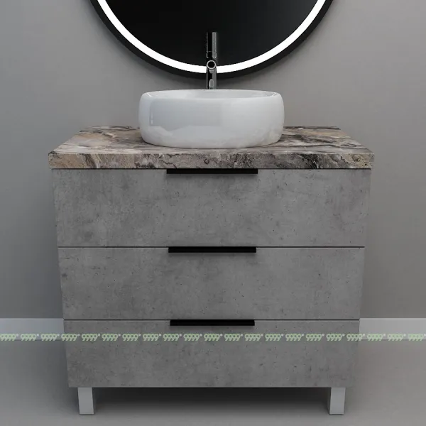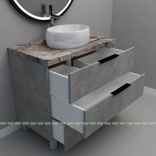 Мебель для ванной: тумбы, пеналы, шкафчики и т.д поставляются в СОБРАННОМ ВИДЕ (кроме накладных ручек и ножек, если таковые есть в модели, они прикручиваются самостоятельно), столешницы под врезной или накладной умывальник изготавливаются БЕЗ ВЫРЕЗОВ под умывальник и смеситель (все вырезы производятся самостоятельно после монтажа столешницы на опоры (тумбу, кронштейны, уголки и т.д.) или оплачиваются дополнительно, но только после согласования)