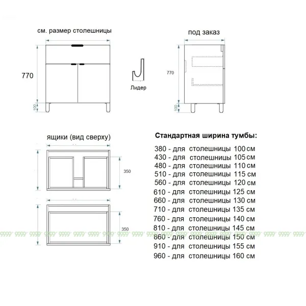 Столешница и умывальник приобретается отдельно! (цену уточнять у менеджера).