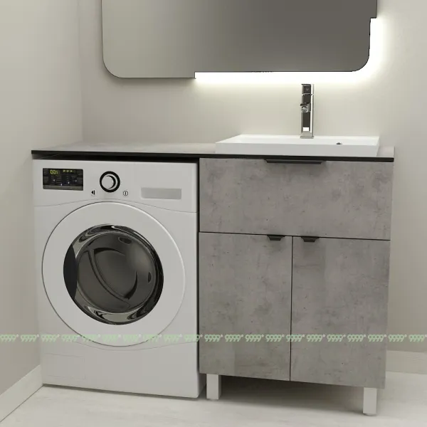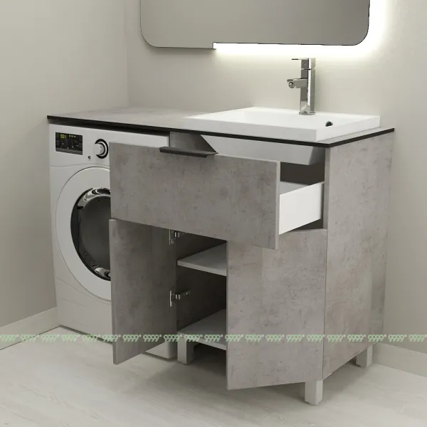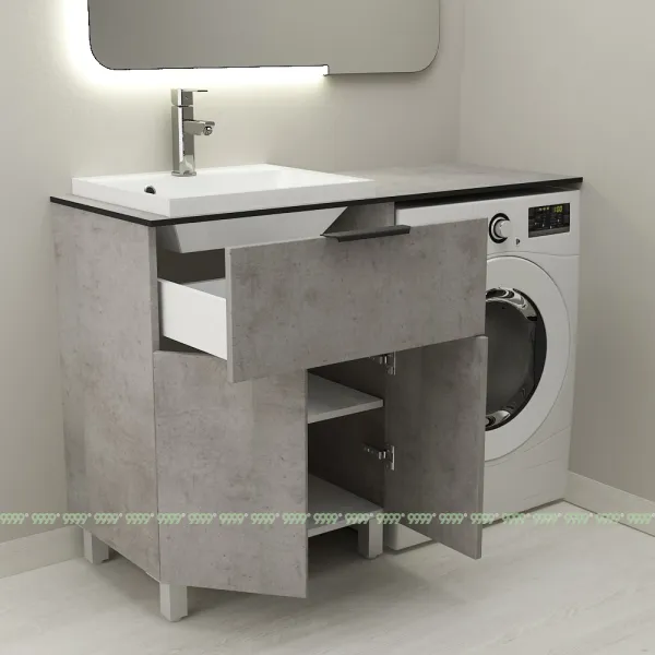 Тумба Дана Каскад 40 напольная с 2 дверцами и ящиком (цвет бетон чикаго) под столешницу 100 см над стиральной машиной