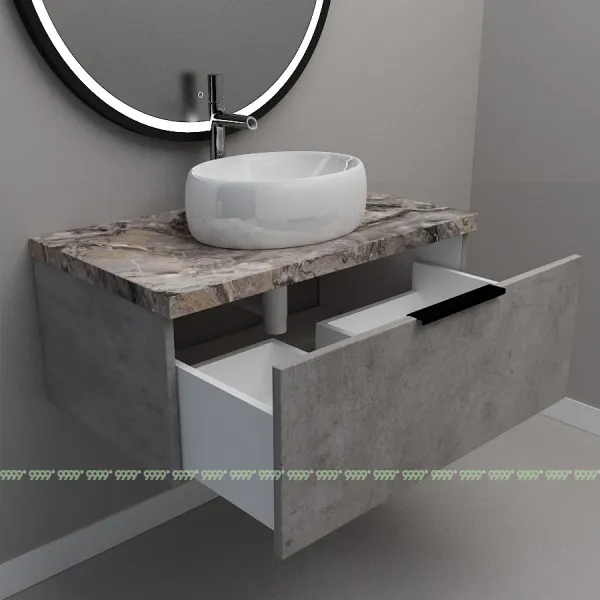 Мебель для ванной: тумбы, пеналы, шкафчики и т.д поставляются в СОБРАННОМ ВИДЕ (кроме накладных ручек и ножек, если таковые есть в модели, они прикручиваются самостоятельно), столешницы под врезной или накладной умывальник изготавливаются БЕЗ ВЫРЕЗОВ под умывальник и смеситель (все вырезы производятся самостоятельно после монтажа столешницы на опоры (тумбу, кронштейны, уголки и т.д.) или оплачиваются дополнительно, но только после согласования)