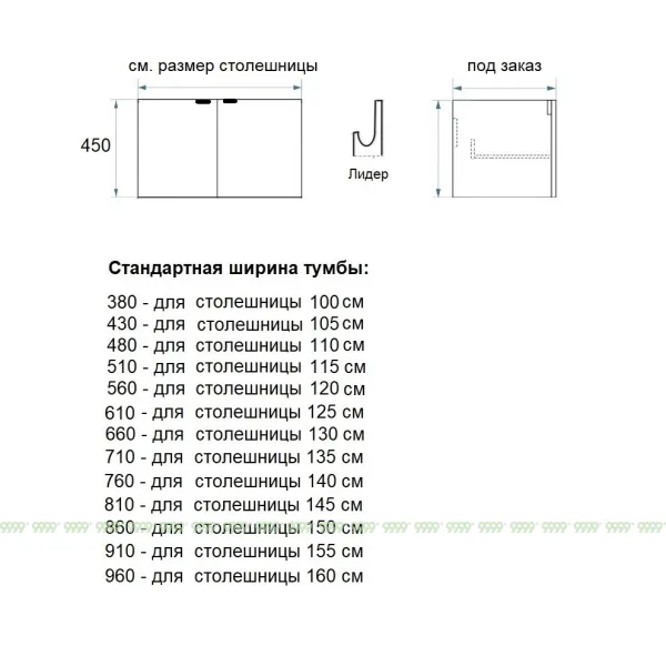 Столешница и умывальник приобретается отдельно! (цену уточнять у менеджера).