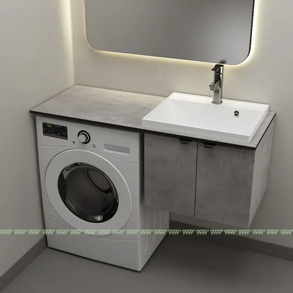 При установке столешницы или умывальника со столешницей над стиральной машиной можно использовать установку на кронштейн, который крепится на заднюю стенку за стиральной машиной и является точкой опоры для свободного края столешницы. Если же столешница примыкает к торцевой (боковой) стене впритык, тогда закрепить ее можно на любые точки опоры сбоку, а именно: мебельные металлические уголки, балку или брусок. Для этого по уровню отмечаем местонахождения верхней точки упора и монтируем его на стену.