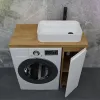 При установке столешницы над стиральной машиной можно использовать установку на кронштейн, который крепится на заднюю стенку за стиральной машиной и является точкой опоры для свободного края столешницы. Если же столешница примыкает к торцевой (боковой) стене впритык, тогда закрепить ее можно на любые точки опоры сбоку, а именно: мебельные металлические уголки, балку или брусок. Для этого по уровню отмечаем местонахождения верхней точки упора и монтируем его на стену.