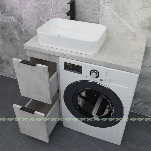 Функционал: напольная тумба, 2 ящика, доводчики скрытого монтажа, 4 регулируемые ножки, накладная ручка (на выбор).