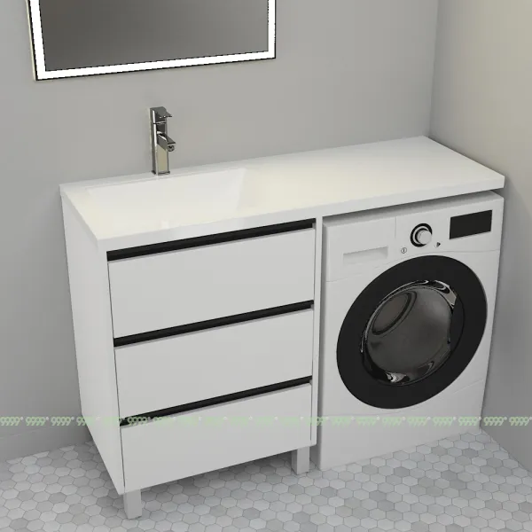 Создает единую поверхность стиральной машины и тумбы, без перепадов и зазоров. Не дает каплям воды попадать на поверхность тумбы, сохраняя ее первозданный вид, без разрушения.
