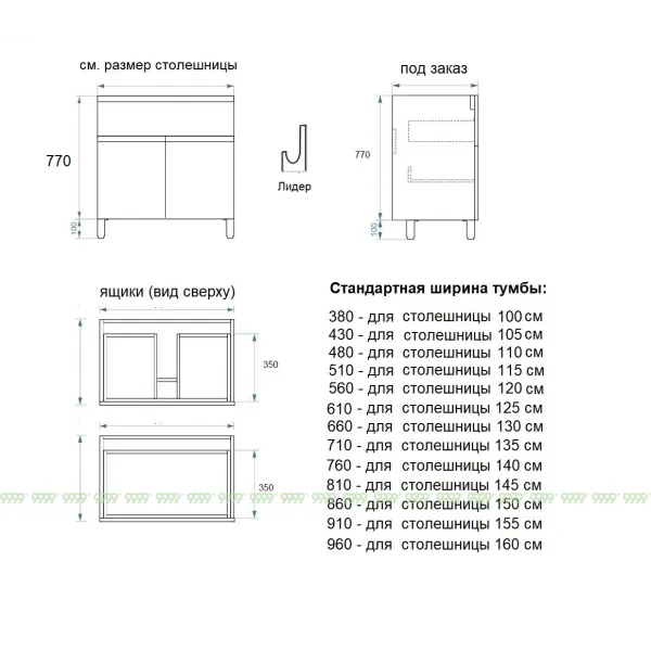 Столешница и умывальник приобретается отдельно! (цену уточнять у менеджера).