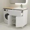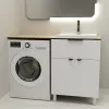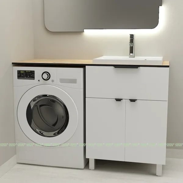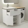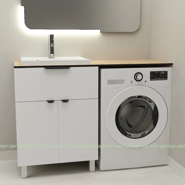 При установке столешницы или умывальника со столешницей над стиральной машиной можно использовать установку на кронштейн, который крепится на заднюю стенку за стиральной машиной и является точкой опоры для свободного края столешницы. Если же столешница примыкает к торцевой (боковой) стене впритык, тогда закрепить ее можно на любые точки опоры сбоку, а именно: мебельные металлические уголки, балку или брусок. Для этого по уровню отмечаем местонахождения верхней точки упора и монтируем его на стену.