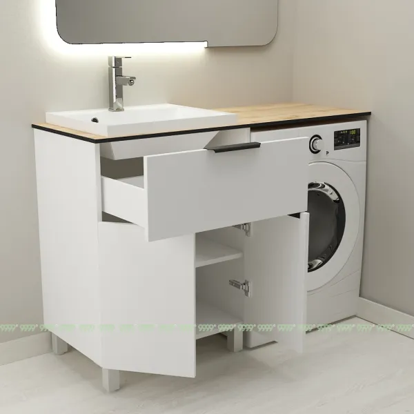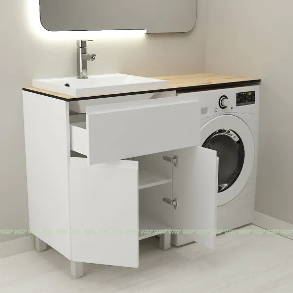 Мебель для ванной: тумбы, пеналы, шкафчики и т.д поставляются в СОБРАННОМ ВИДЕ (кроме накладных ручек и ножек, если таковые есть в модели, они прикручиваются самостоятельно), столешницы под врезной или накладной умывальник изготавливаются БЕЗ ВЫРЕЗОВ под умывальник и смеситель (все вырезы производятся самостоятельно после монтажа столешницы на опоры (тумбу, кронштейны, уголки и т.д.) или оплачиваются дополнительно, но только после согласования)