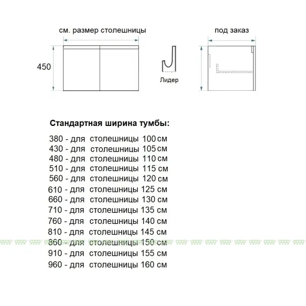 Столешница и умывальник приобретается отдельно! (цену уточнять у менеджера).
