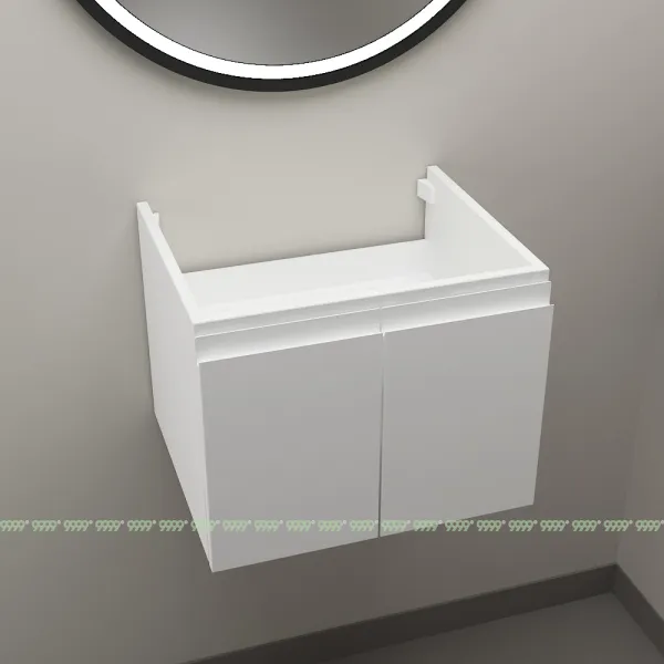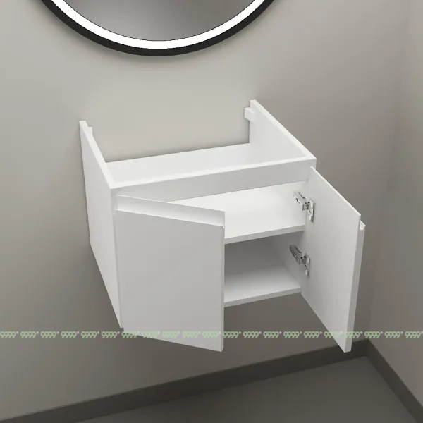 Функционал: подвесная тумба, 2 дверцы, доводчики скрытого монтажа, фрезерованная или накладная ручка (на выбор).