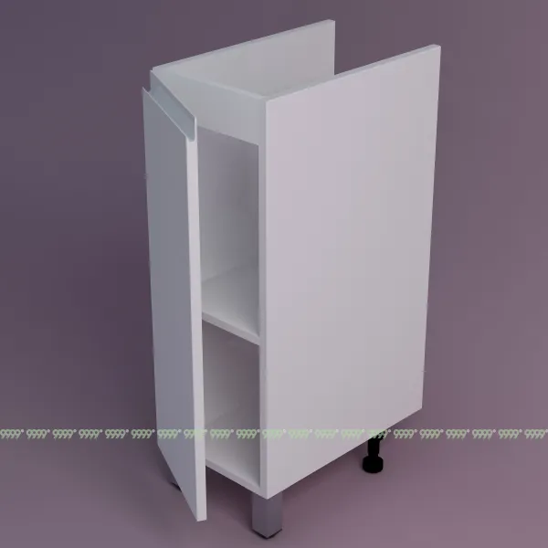 Функционал: напольная тумба, 1 дверь с плавным закрыванием (петли слева), 1 полка, 4 регулируемые ножки, фрезерованная или накладная ручка (на выбор).