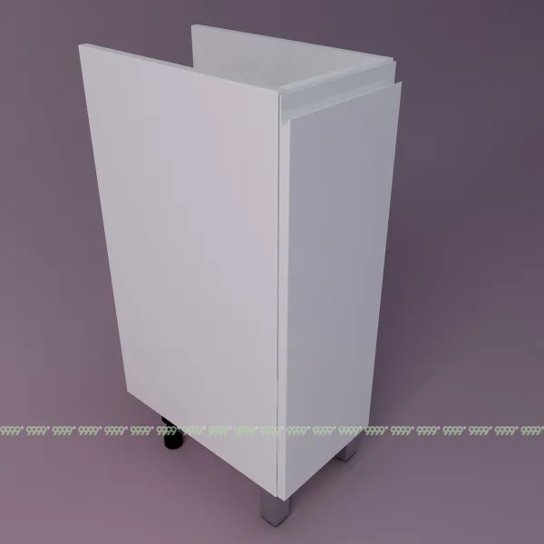Функционал: напольная тумба, 1 дверь с плавным закрыванием (петли слева), 1 полка, 4 регулируемые ножки, фрезерованная или накладная ручка (на выбор).