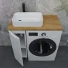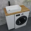 При установке столешницы над стиральной машиной можно использовать установку на кронштейн, который крепится на заднюю стенку за стиральной машиной и является точкой опоры для свободного края столешницы. Если же столешница примыкает к торцевой (боковой) стене впритык, тогда закрепить ее можно на любые точки опоры сбоку, а именно: мебельные металлические уголки, балку или брусок. Для этого по уровню отмечаем местонахождения верхней точки упора и монтируем его на стену.