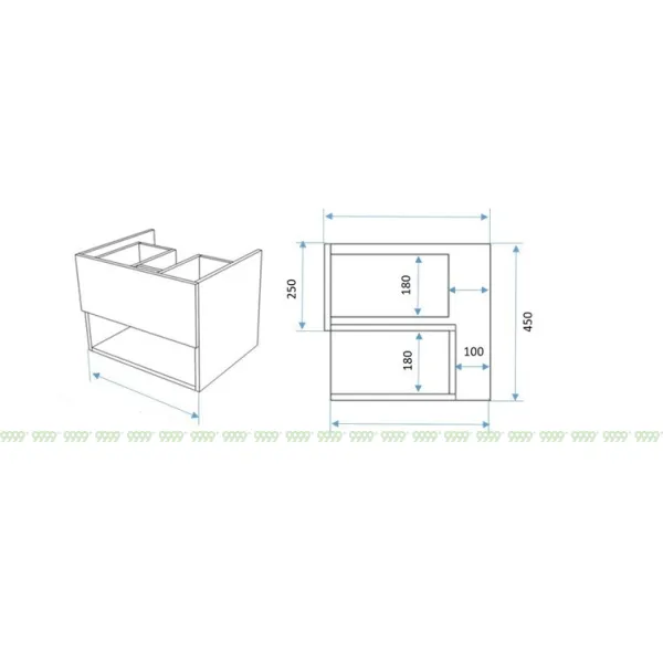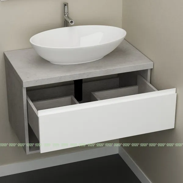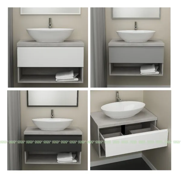 Функционал: подвесная тумба, 1 выдвижной ящик с плавным ходом и закрыванием (доводчики нижнего монтажа : Boyard), открытая полка.