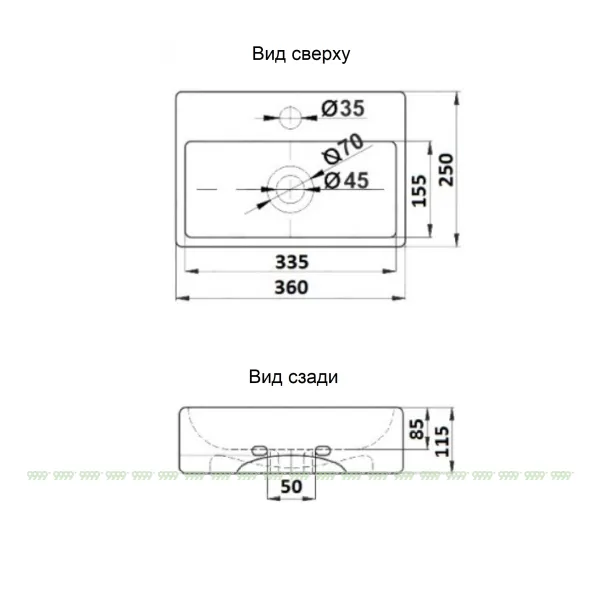 Характеристики умывальника: