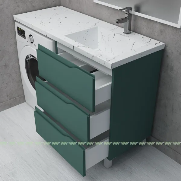 Тумба Дана Вектор напольная на 3 ящика (цвет зеленый хром) под столешницу над стиральной машиной