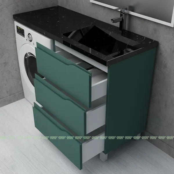 Тумба Дана Вектор напольная на 3 ящика (цвет зеленый хром) под столешницу над стиральной машиной
