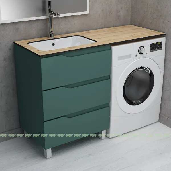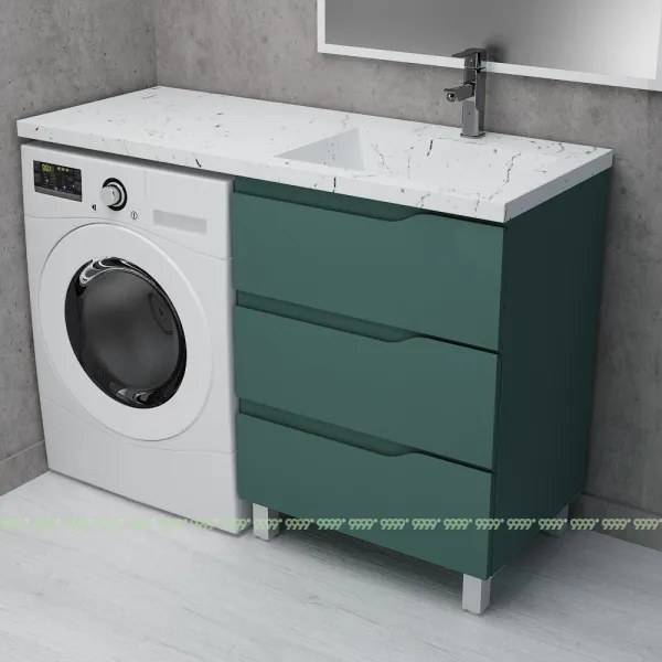 Тумба Дана Вектор напольная на 3 ящика (цвет зеленый хром) под столешницу над стиральной машиной