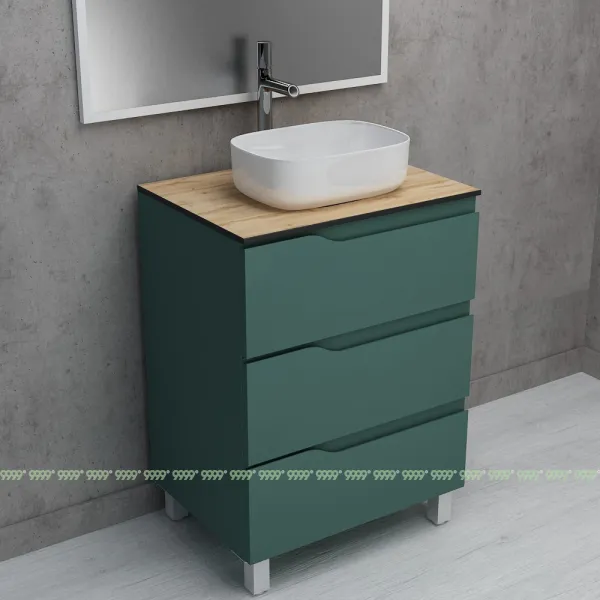 Мебель для ванной: тумбы, пеналы, шкафчики и т.д поставляются в СОБРАННОМ ВИДЕ (кроме накладных ручек и ножек, если таковые есть в модели, они прикручиваются самостоятельно), столешницы под врезной или накладной умывальник изготавливаются БЕЗ ВЫРЕЗОВ под умывальник и смеситель (все вырезы производятся самостоятельно после монтажа столешницы на опоры (тумбу, кронштейны, уголки и т.д.) или оплачиваются дополнительно, но только после согласования)