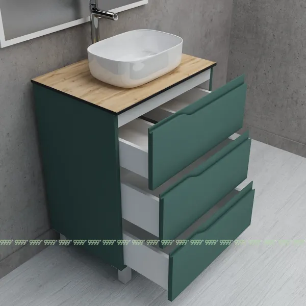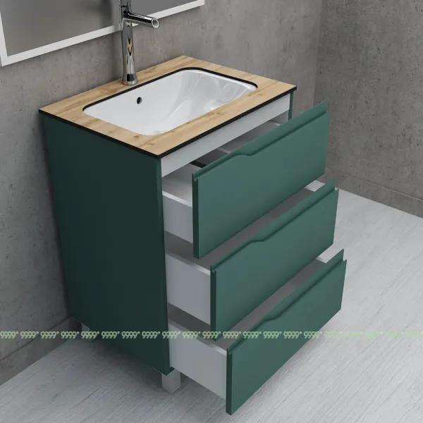 функционал: напольная тумба, 3 выдвижных ящика с плавным ходом и закрыванием (доводчики нижнего монтажа - Boyard).