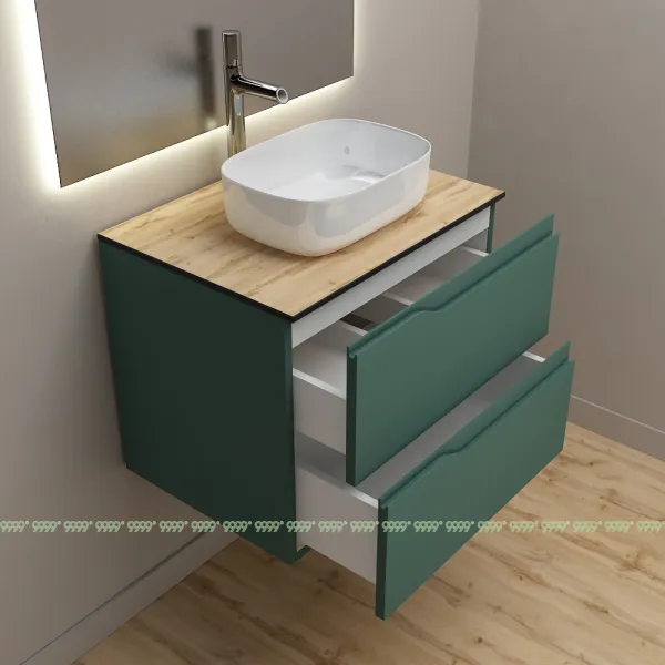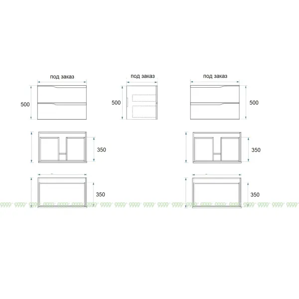 функционал: подвесная тумба, 2 выдвижных ящика с плавным ходом и закрыванием (доводчики нижнего монтажа - Boyard).