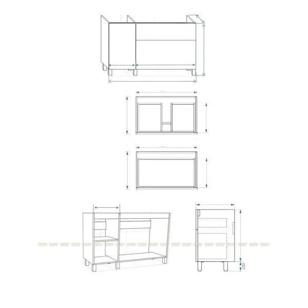 - Напольная тумба устанавливается на пол на ножки (высота регулируется +25 мм). Боковые стенки тумбы должны вплотную прилегать к стене! Для надежности конструкции тумбу рекомендуем закрепить вплотную к стене насквозь подходящими саморезами через закладную деталь (расположенную на задней части тумбы) примыкающую к стене.