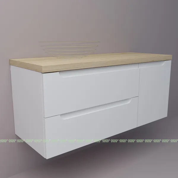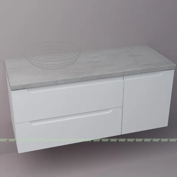 функционал: подвесная тумба, 2 выдвижных ящика с плавным ходом и закрыванием (доводчики нижнего монтажа - Boyard), дверца с плавным закрываем, 1 полка.