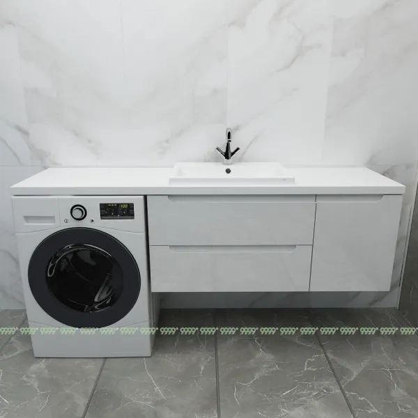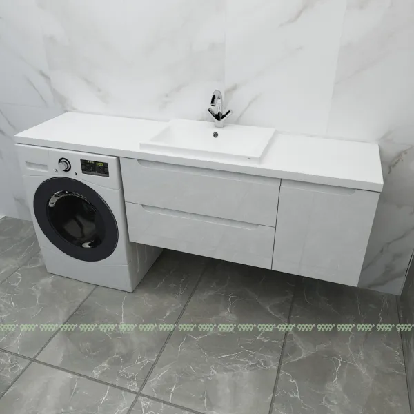 функционал: подвесная тумба, 2 выдвижных ящика с плавным ходом и закрыванием (доводчики нижнего монтажа - Boyard), сбоку дверца с плавным закрываем, 1 полка