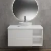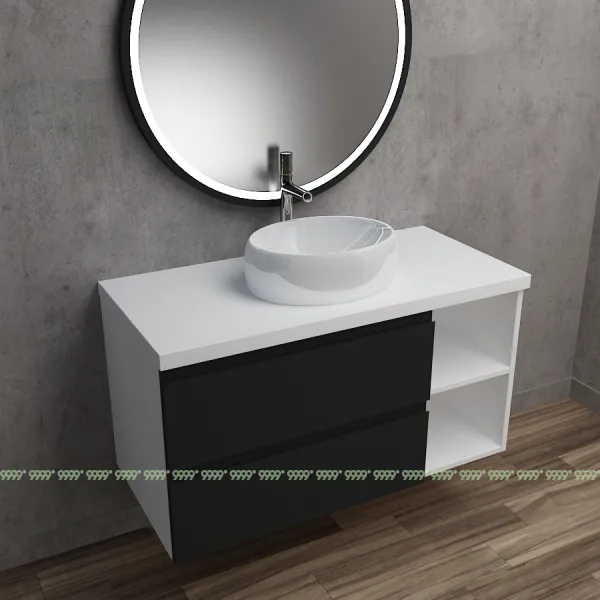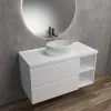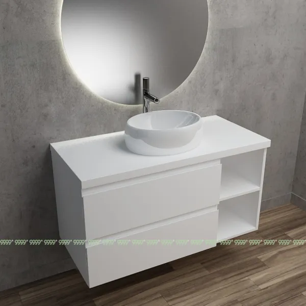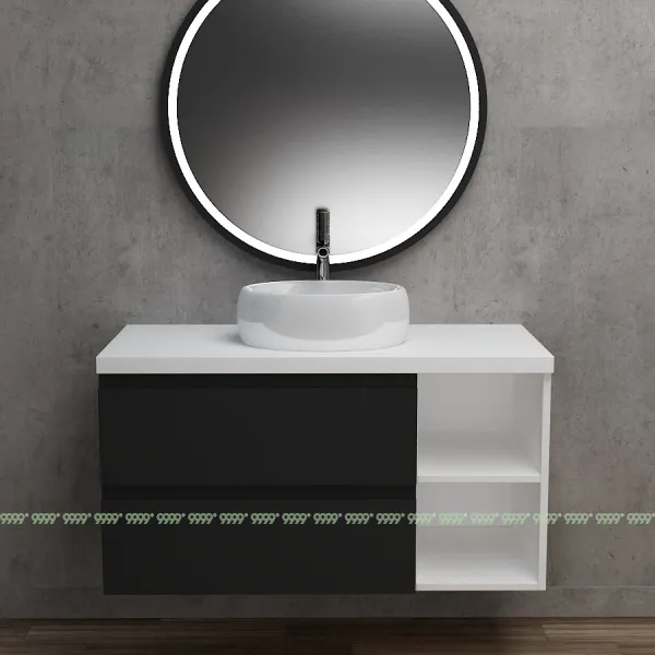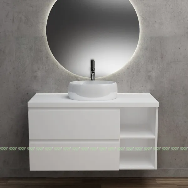 Мебель для ванной: тумбы, пеналы, шкафчики и т.д поставляются в СОБРАННОМ ВИДЕ (кроме накладных ручек и ножек, если таковые есть в модели, они прикручиваются самостоятельно), столешницы под врезной или накладной умывальник изготавливаются БЕЗ ВЫРЕЗОВ под умывальник и смеситель (все вырезы производятся самостоятельно после монтажа столешницы на опоры (тумбу, кронштейны, уголки и т.д.) или оплачиваются дополнительно, но только после согласования)