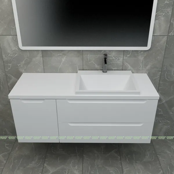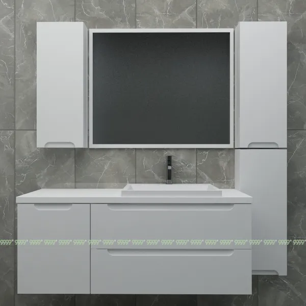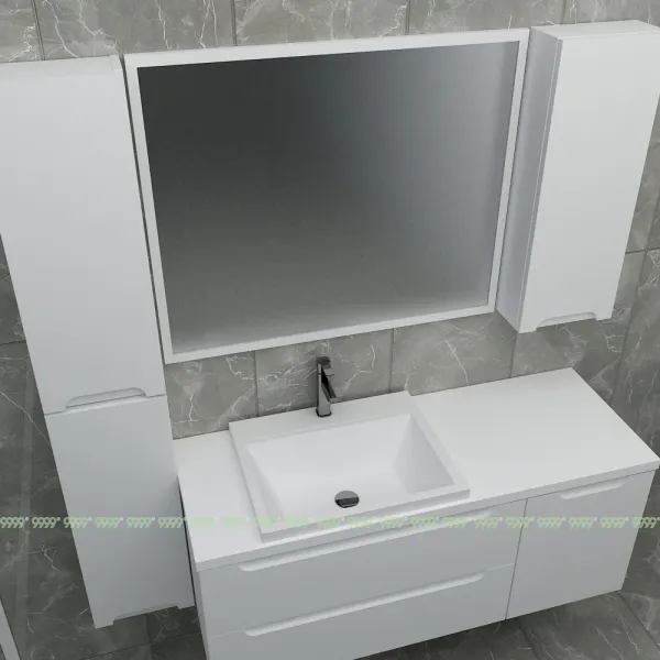 Мебель для ванной: тумбы, пеналы, шкафчики и т.д поставляются в СОБРАННОМ ВИДЕ (кроме накладных ручек и ножек, если таковые есть в модели, они прикручиваются самостоятельно), столешницы под врезной или накладной умывальник изготавливаются БЕЗ ВЫРЕЗОВ под умывальник и смеситель (все вырезы производятся самостоятельно после монтажа столешницы на опоры (тумбу, кронштейны, уголки и т.д.) или оплачиваются дополнительно, но только после согласования)