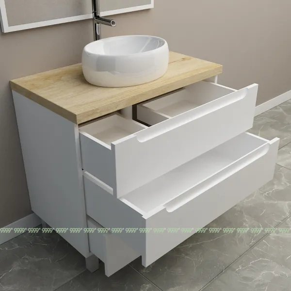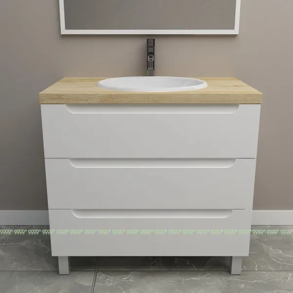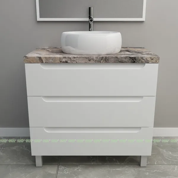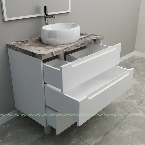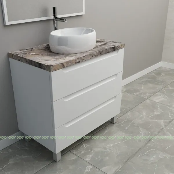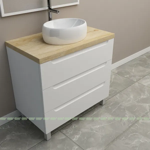 Мебель для ванной: тумбы, пеналы, шкафчики и т.д поставляются в СОБРАННОМ ВИДЕ (кроме накладных ручек и ножек, если таковые есть в модели, они прикручиваются самостоятельно), столешницы под врезной или накладной умывальник изготавливаются БЕЗ ВЫРЕЗОВ под умывальник и смеситель (все вырезы производятся самостоятельно после монтажа столешницы на опоры (тумбу, кронштейны, уголки и т.д.) или оплачиваются дополнительно, но только после согласования)