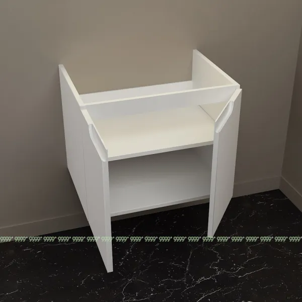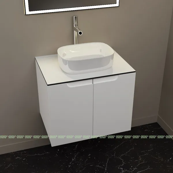 Мебель для ванной: тумбы, пеналы, шкафчики и т.д поставляются в СОБРАННОМ ВИДЕ (кроме накладных ручек и ножек, если таковые есть в модели, они прикручиваются самостоятельно), столешницы под врезной или накладной умывальник изготавливаются БЕЗ ВЫРЕЗОВ под умывальник и смеситель (все вырезы производятся самостоятельно после монтажа столешницы на опоры (тумбу, кронштейны, уголки и т.д.) или оплачиваются дополнительно, но только после согласования)