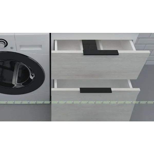 функционал: напольная тумба с регулируемыми ножками, 2 выдвижных ящика с плавным ходом и закрыванием (доводчики нижнего монтажа - Boyard), нижний ящик можно использовать как корзина для белья.