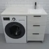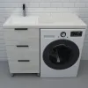Монтаж умывальника со столешницей из литьевого мрамора над стиральной машиной.